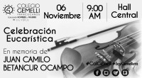 La comunidad fraciscana provincia de la santa fe - Colegio Gemelli, invita a la comunidad Gemellista a la celebración eucarística en memoria del estudiante Juan Camilo Betancur Ocampo, el día miercoles 06 de Noviembre de 2019 a las 9:00 am en el Hall Central. #Colgemelli #Soygemellista Colegios privados en Manizales - Colegios privados Manizales - Mejores colegios en Manizales